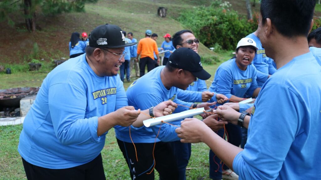 Foto : Kegiatan FMD diisi dengan Kegiatan ice breaking dan games team building, dimana seluruh pegawai terbagi bagi dalam beberapa team untuk menyelesaikan setiap games yang di lakukan.
