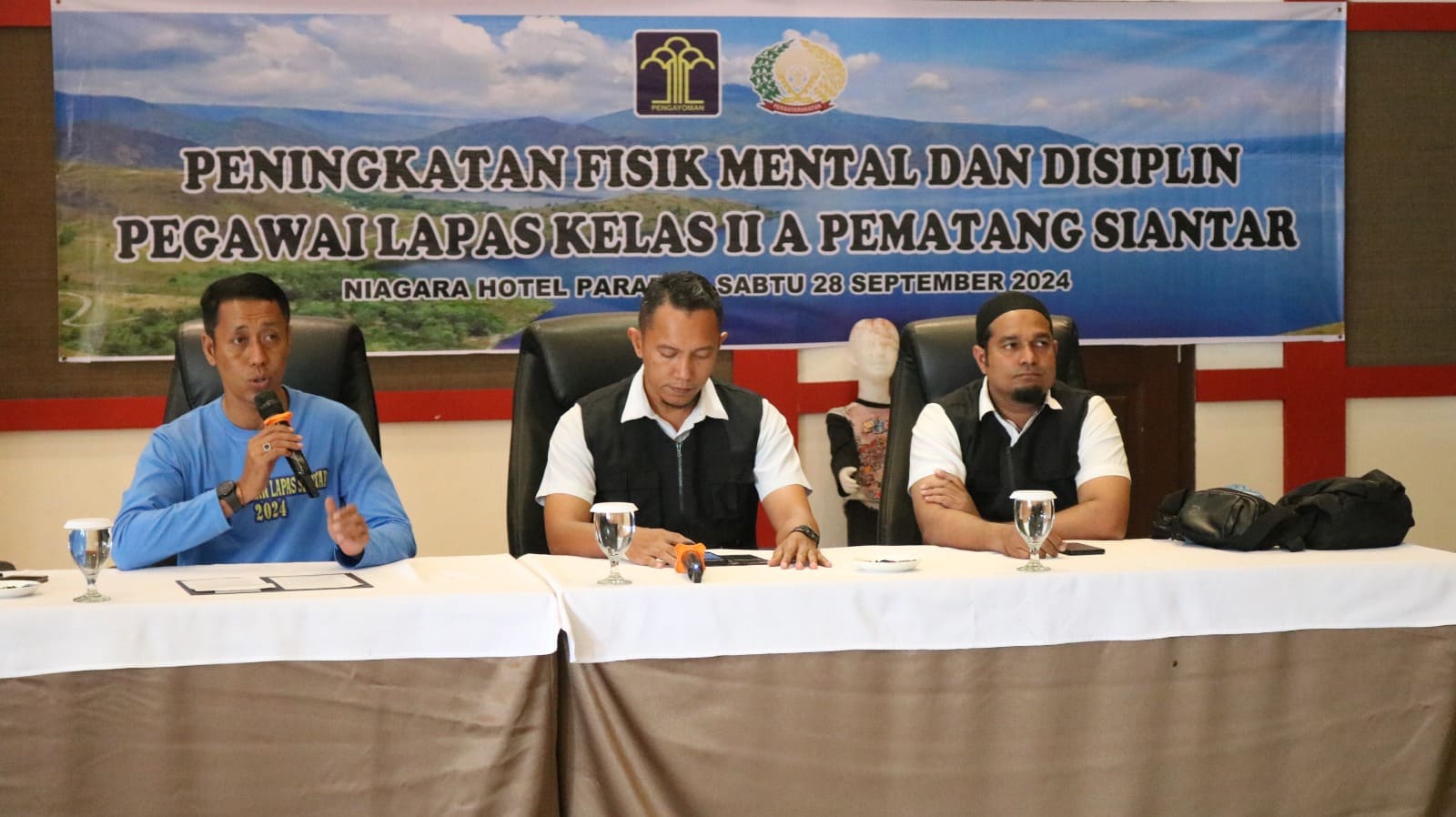 PEMATANGSIANTAR, WJ GROUP _ Lapas Pematang Siantar Kanwil Kemenkumham Sumut menggelar kegiatan pembinaan Fisik, Mental, dan Disiplin (FMD) bagi seluruh pegawai Pada Hari Sabtu Tgl 28 September Tahun 2024 /Pukul 09 :00 Wib . Acara yang berlangsung di Niagara Hotel Parapat. ini dilaksanakan sebagai sarana meningkatkan kebugaran fisik, kekuatan mental, serta kedisiplinan para pegawai dalam menjalankan tugas sehari-hari.