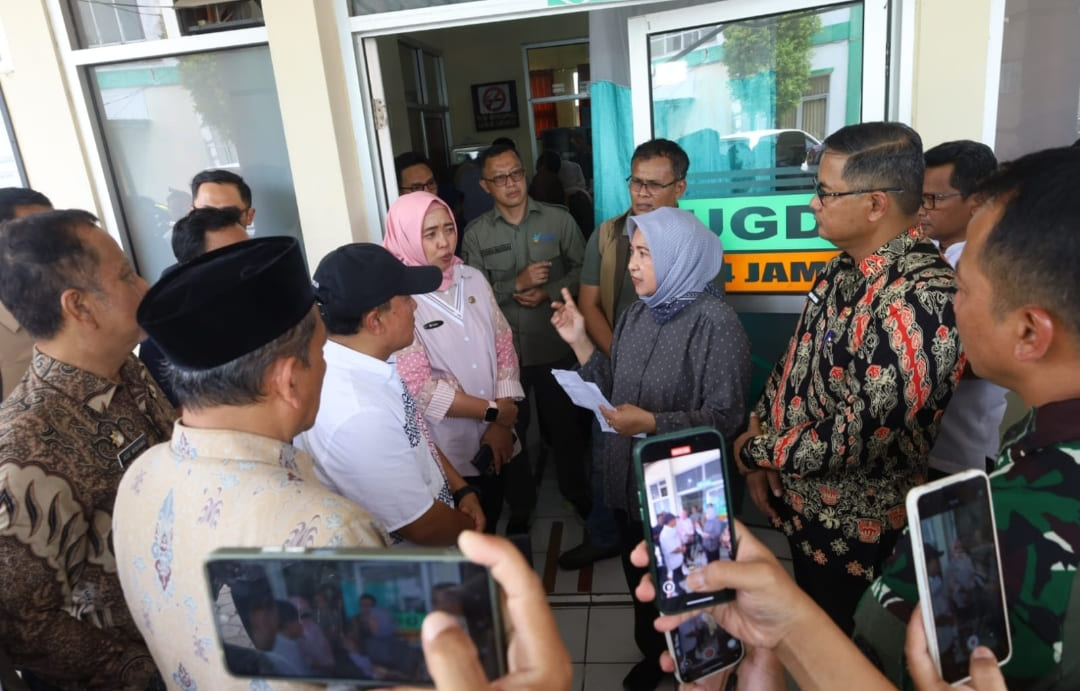 Kunjungan tersebut turut didampingi Ketua Satgas MBG Kabupaten Kuningan, Dr. Wahyu Hidayah, M.Si., yang juga Pj Sekda, serta sejumlah kepala OPD terkait. Hadir pula Dandim 0615 Kuningan dan Kapolres Kuningan yang ikut memantau langsung kondisi siswa yang dirawat.
