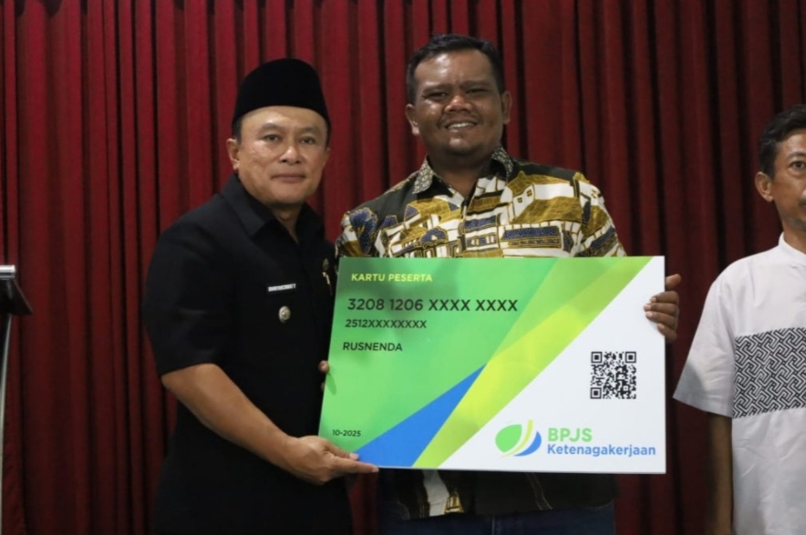 Lindungi 3.247 Pekerja Rentan, Bupati Kuningan Serahkan Kartu BPJS Ketenagakerjaan