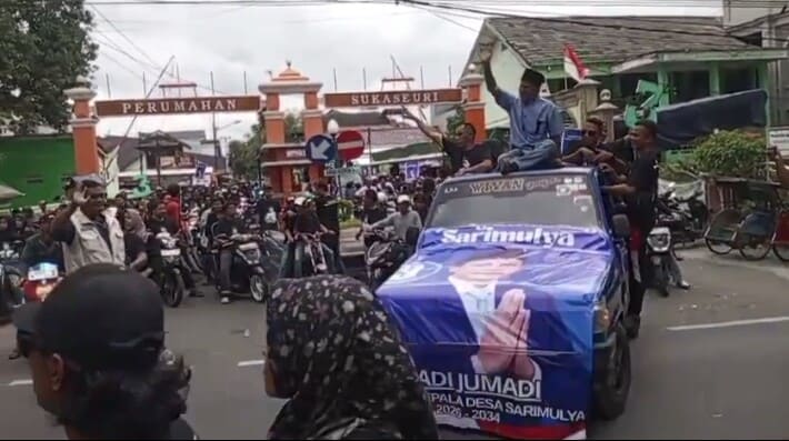 Sejak awal kegiatan, massa terus berdatangan dan meneriakkan yel-yel dukungan “Lanjutkan” sebagai simbol kepercayaan publik terhadap kepemimpinan Jumadi. Aksi tersebut memperlihatkan posisi Jumadi sebagai figur yang masih mendapat tempat kuat di hati masyarakat Sarimulya.
