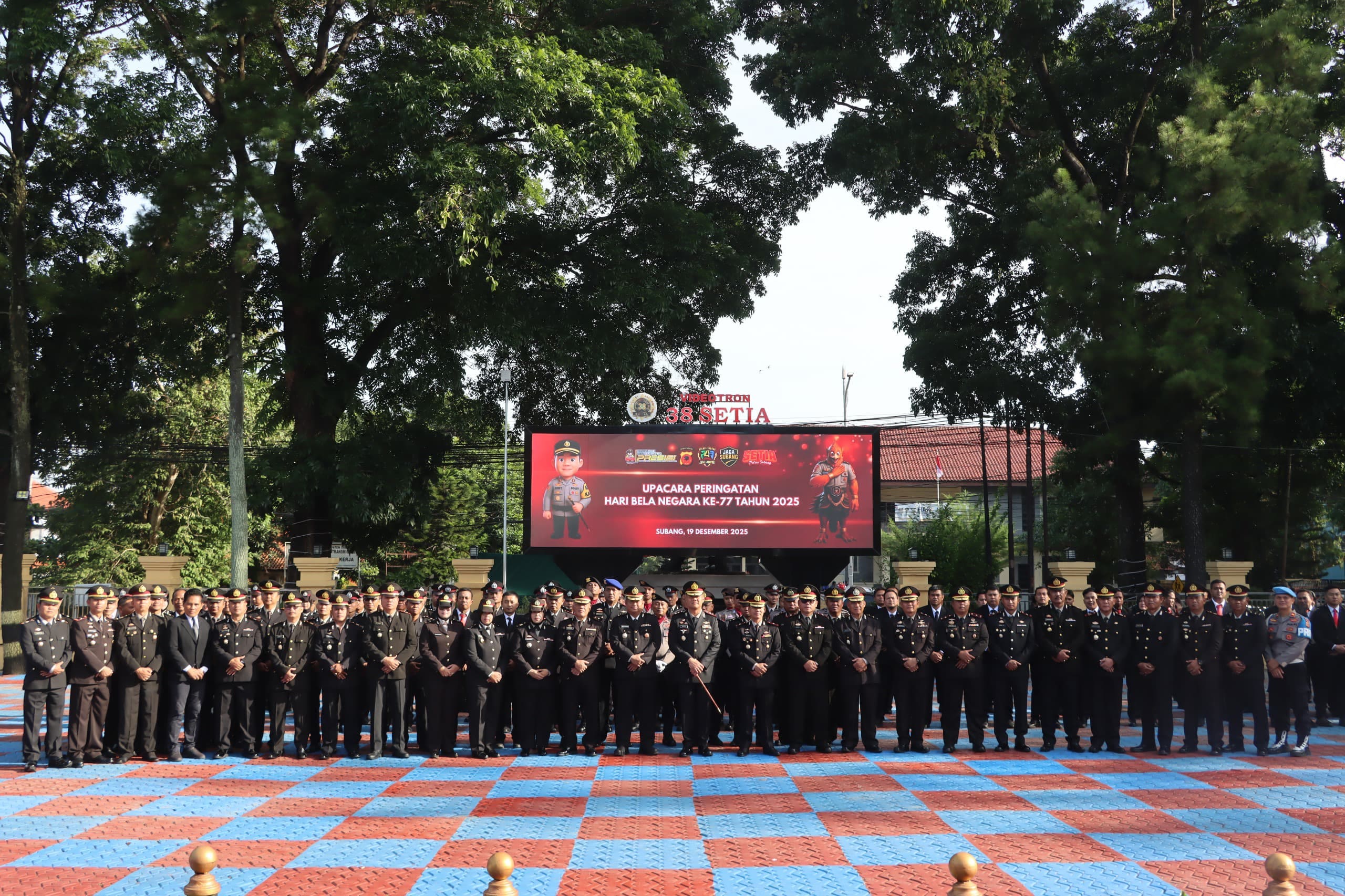Foto: Upacara Peringatan ke-77 Hari Bela Negara Tahun 2025 berlangsung khidmat di Lapangan Apel Polres Subang, Jumat (19/12/2025) pagi.