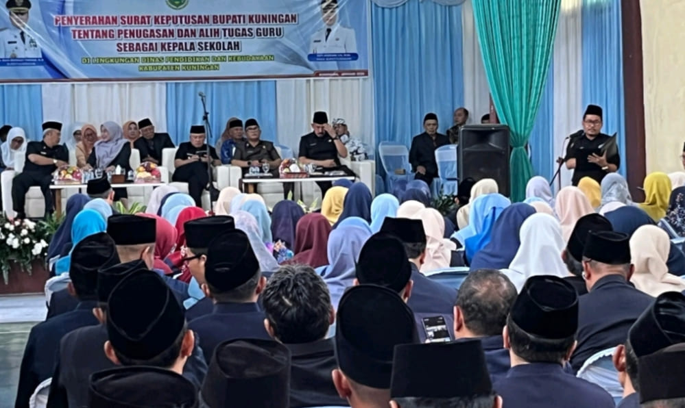 KUNINGAN-Wartajabar.Online | Bupati Kuningan Dr. H. Dian Rachmat Yanuar, M.Si menegaskan bahwa kepala sekolah memiliki peran strategis sebagai penentu arah dan masa depan pendidikan. Hal tersebut disampaikannya saat melantik sekaligus menghadiri serah terima jabatan, promosi, dan rotasi kepala sekolah jenjang TK, SD, dan SMP se-Kabupaten Kuningan di SMP Negeri 1 Cilimus.