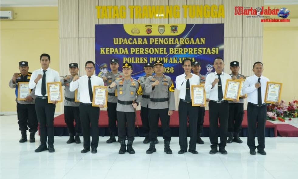 PURWAKARTA-WJ Online | Polres Purwakarta memberikan penghargaan kepada 12 personel berprestasi sebagai bentuk apresiasi atas loyalitas, dedikasi, dan kontribusi dalam pelaksanaan tugas kepolisian.