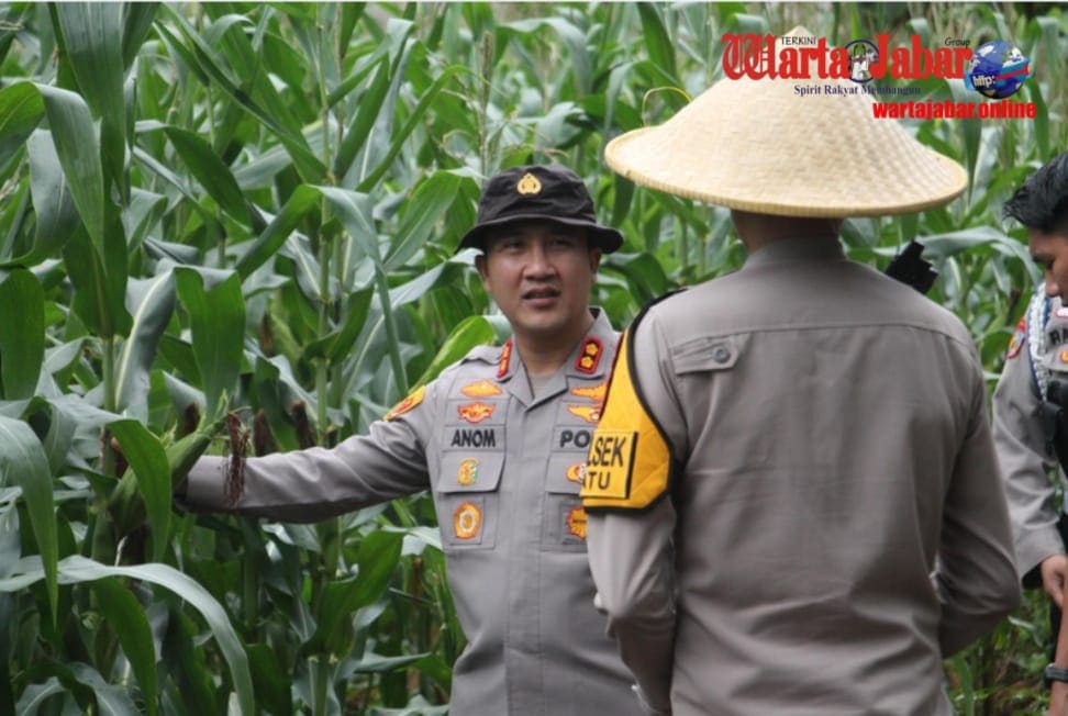Kapolres Purwakarta, AKBP I Dewa Putu Gede Anom Danujaya, bersama jajaran Pejabat Utama Polres Purwakarta turun langsung meninjau perkembangan tanaman jagung milik warga.
