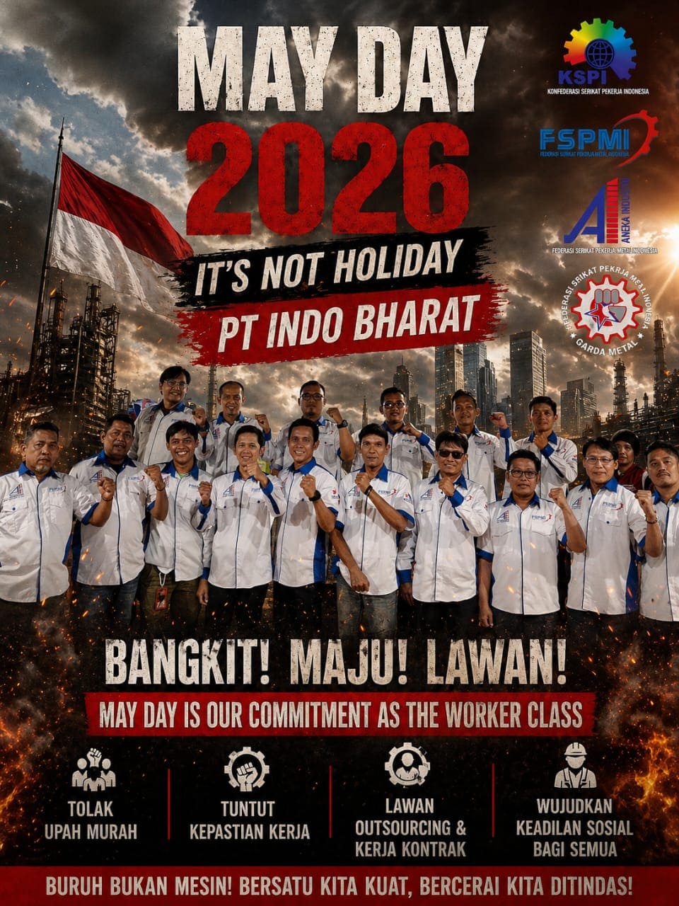 “Ini bukan bentuk perlawanan, tetapi langkah bersama untuk mewujudkan keadilan di dunia kerja. Kami berjuang demi masa depan seluruh pekerja dan keluarganya,” ujarnya. Kantor Sekretariat FSPMI Indo Bharat Pada hari Minggu (26/4/2026).