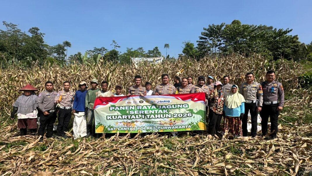 PURWAKARTA-WJ Online | Satuan Lalu Lintas (Sat Lantas) Polres Purwakarta berhasil memanen sekitar 8 ton jagung hibrida dalam kegiatan panen Kuartal I yang dilaksanakan bersama kelompok tani di Kabupaten Purwakarta. Kegiatan ini menjadi bagian dari dukungan terhadap program swasembada pangan tahun 2026.